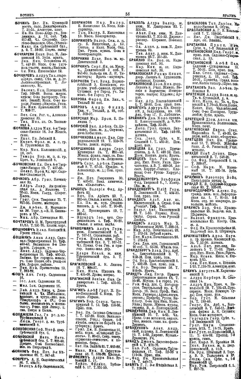 Алфавитный указатель адресовъ жителей г. Москвы и ея пригородовъ - page 56