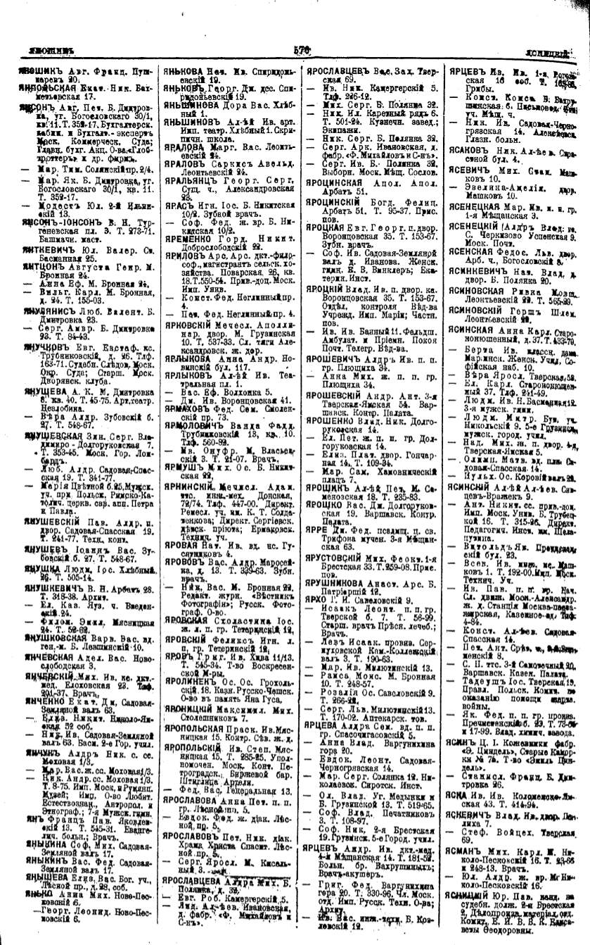 Алфавитный указатель адресовъ жителей г. Москвы и ея пригородовъ - page 568