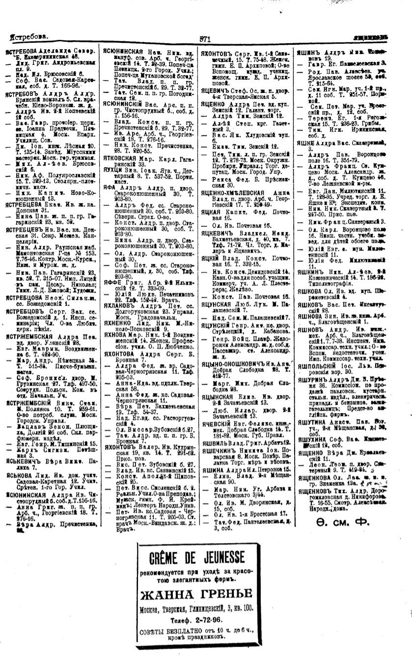 Алфавитный указатель адресовъ жителей г. Москвы и ея пригородовъ - page 569