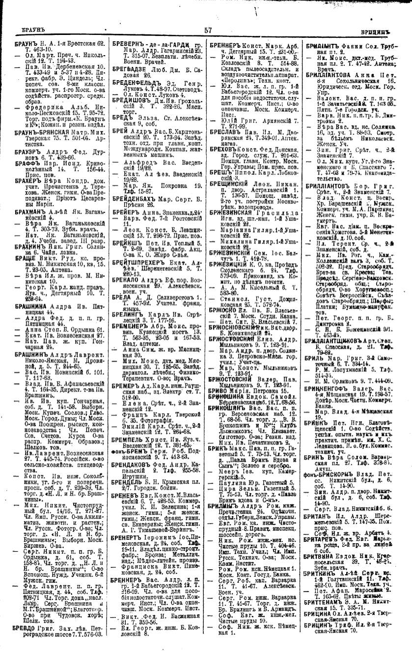 Алфавитный указатель адресовъ жителей г. Москвы и ея пригородовъ - page 57