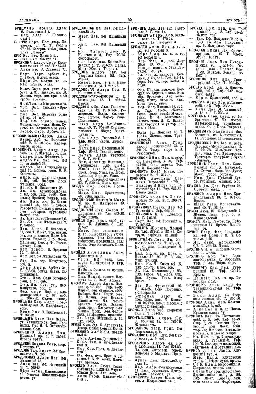 Алфавитный указатель адресовъ жителей г. Москвы и ея пригородовъ - page 58