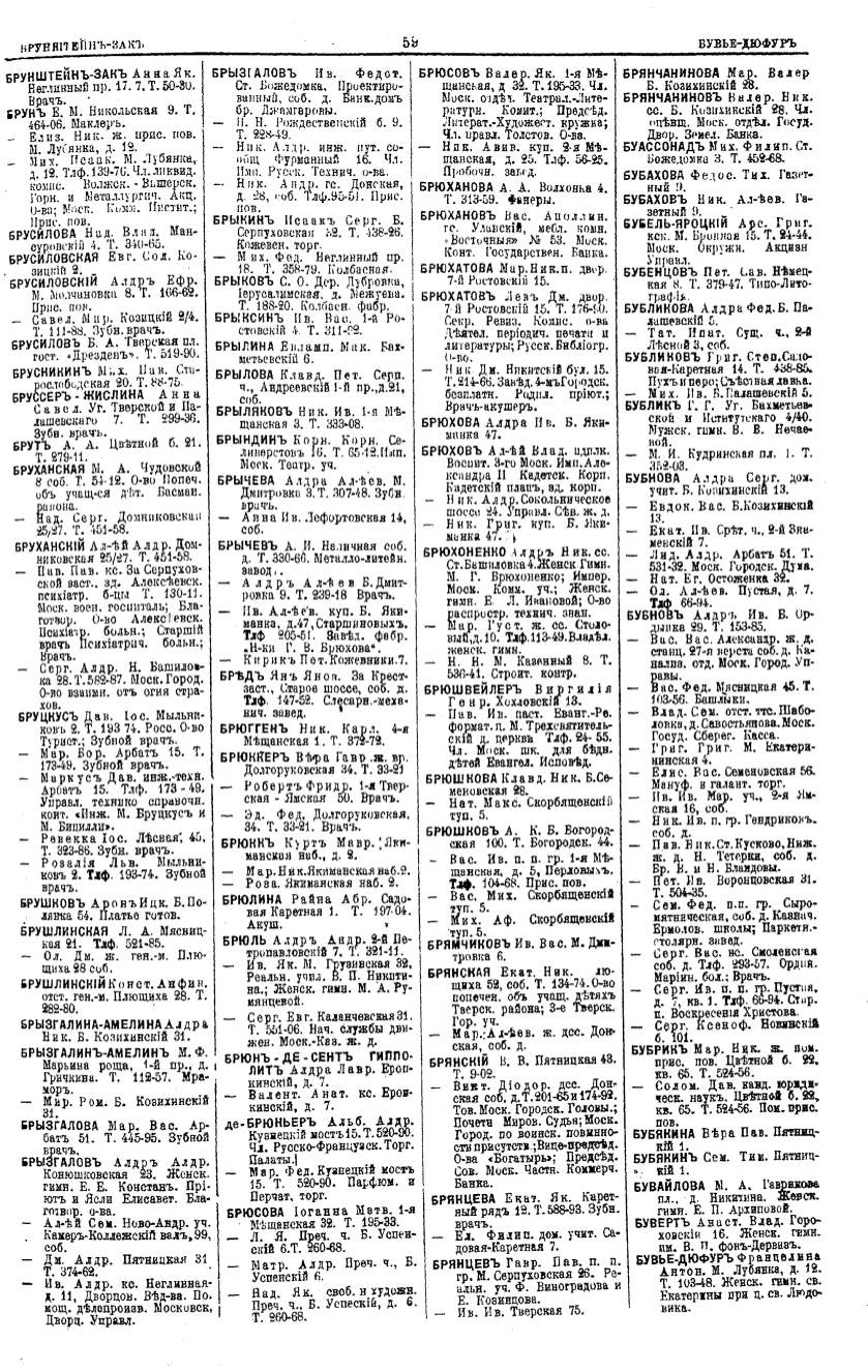 Алфавитный указатель адресовъ жителей г. Москвы и ея пригородовъ - page 59