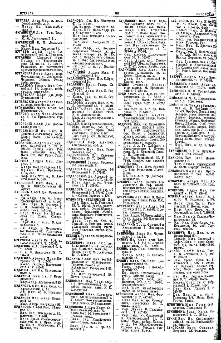 Алфавитный указатель адресовъ жителей г. Москвы и ея пригородовъ - page 60