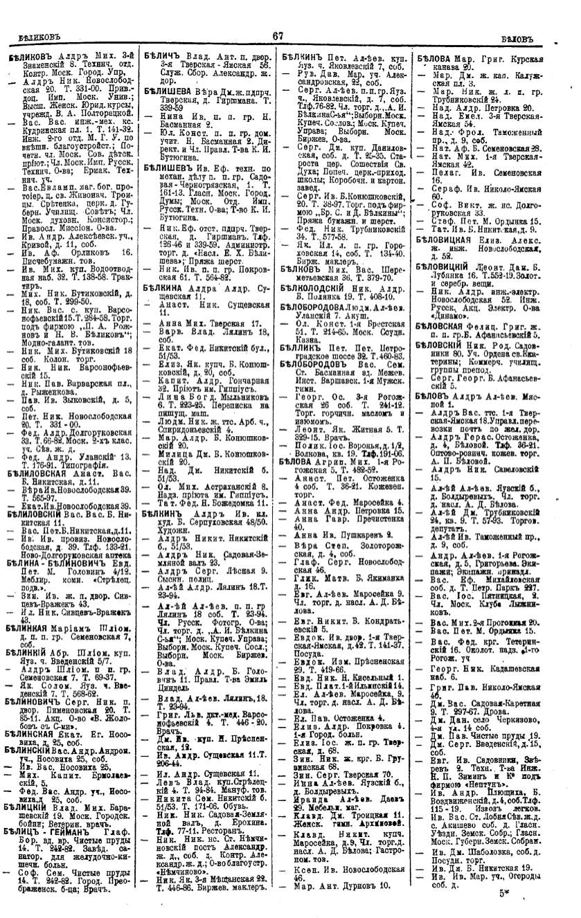 Алфавитный указатель адресовъ жителей г. Москвы и ея пригородовъ - page 67