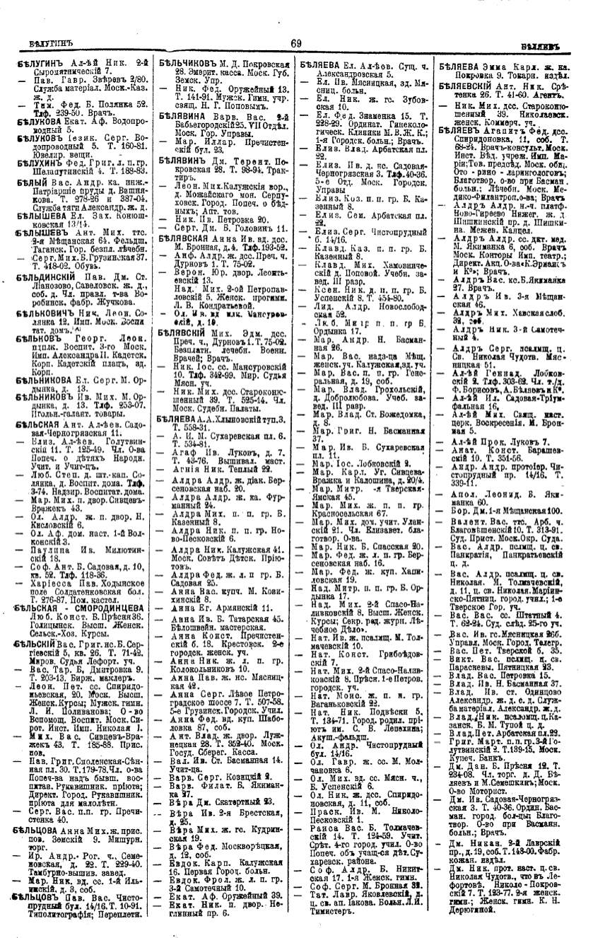 Алфавитный указатель адресовъ жителей г. Москвы и ея пригородовъ - page 69