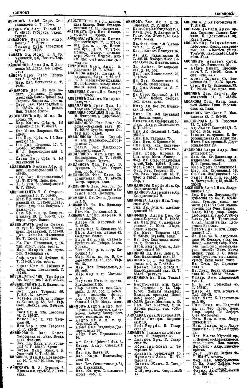 Алфавитный указатель адресовъ жителей г. Москвы и ея пригородовъ - page 7
