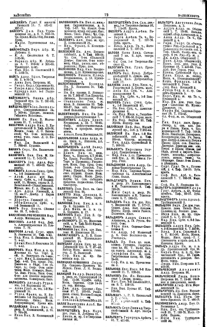 Алфавитный указатель адресовъ жителей г. Москвы и ея пригородовъ - page 72