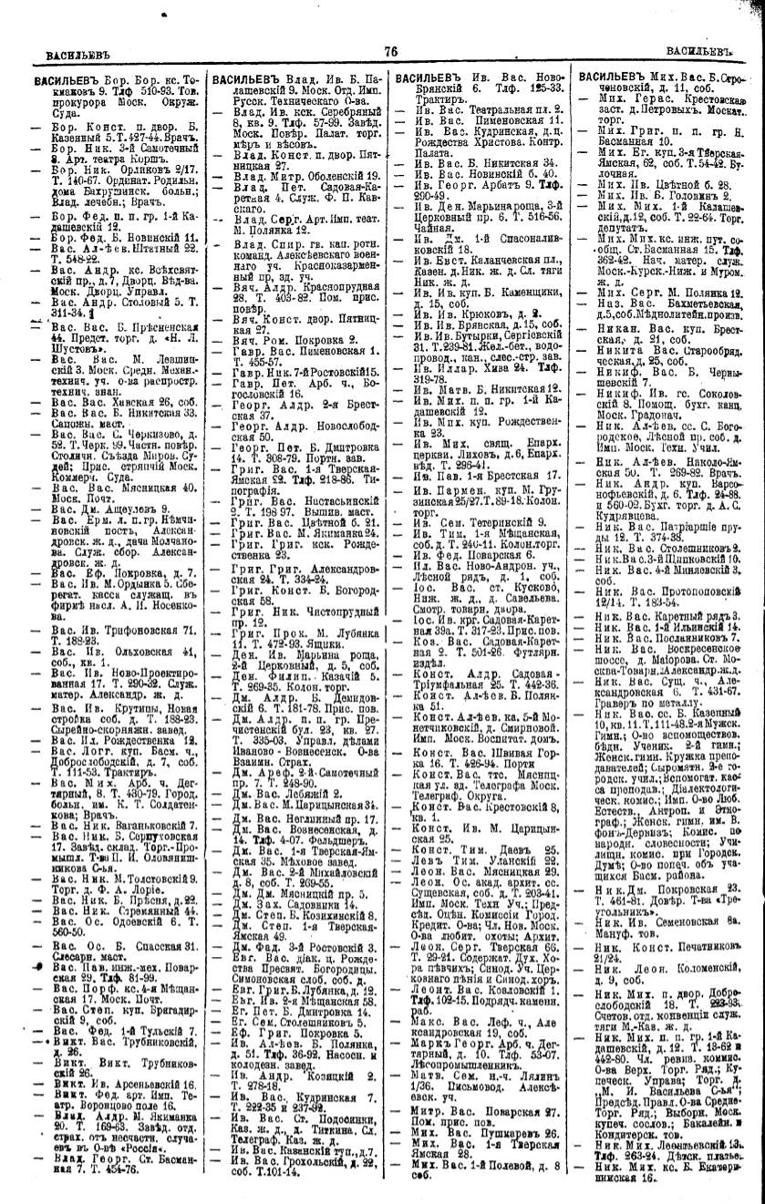 Алфавитный указатель адресовъ жителей г. Москвы и ея пригородовъ - page 76