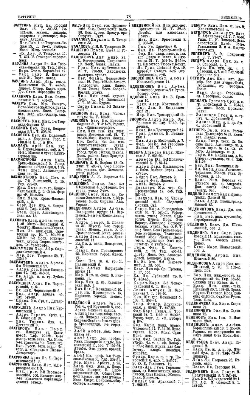 Алфавитный указатель адресовъ жителей г. Москвы и ея пригородовъ - page 78