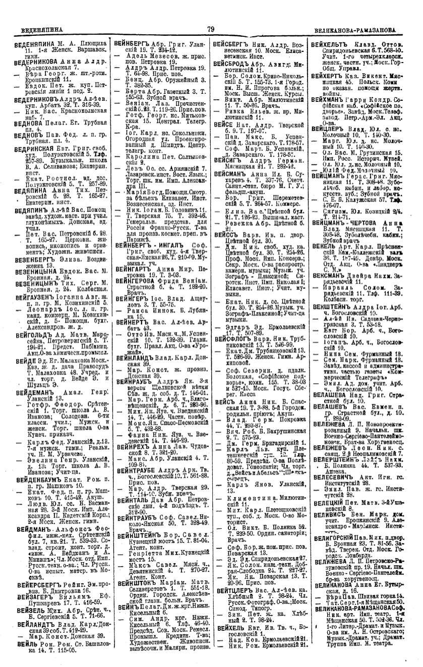 Алфавитный указатель адресовъ жителей г. Москвы и ея пригородовъ - page 79