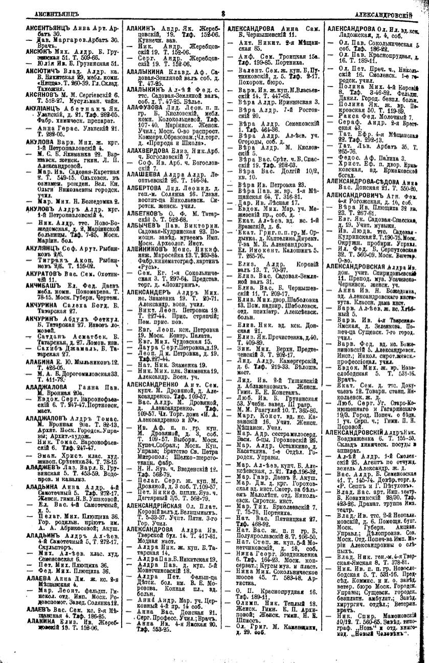 Алфавитный указатель адресовъ жителей г. Москвы и ея пригородовъ - page 8