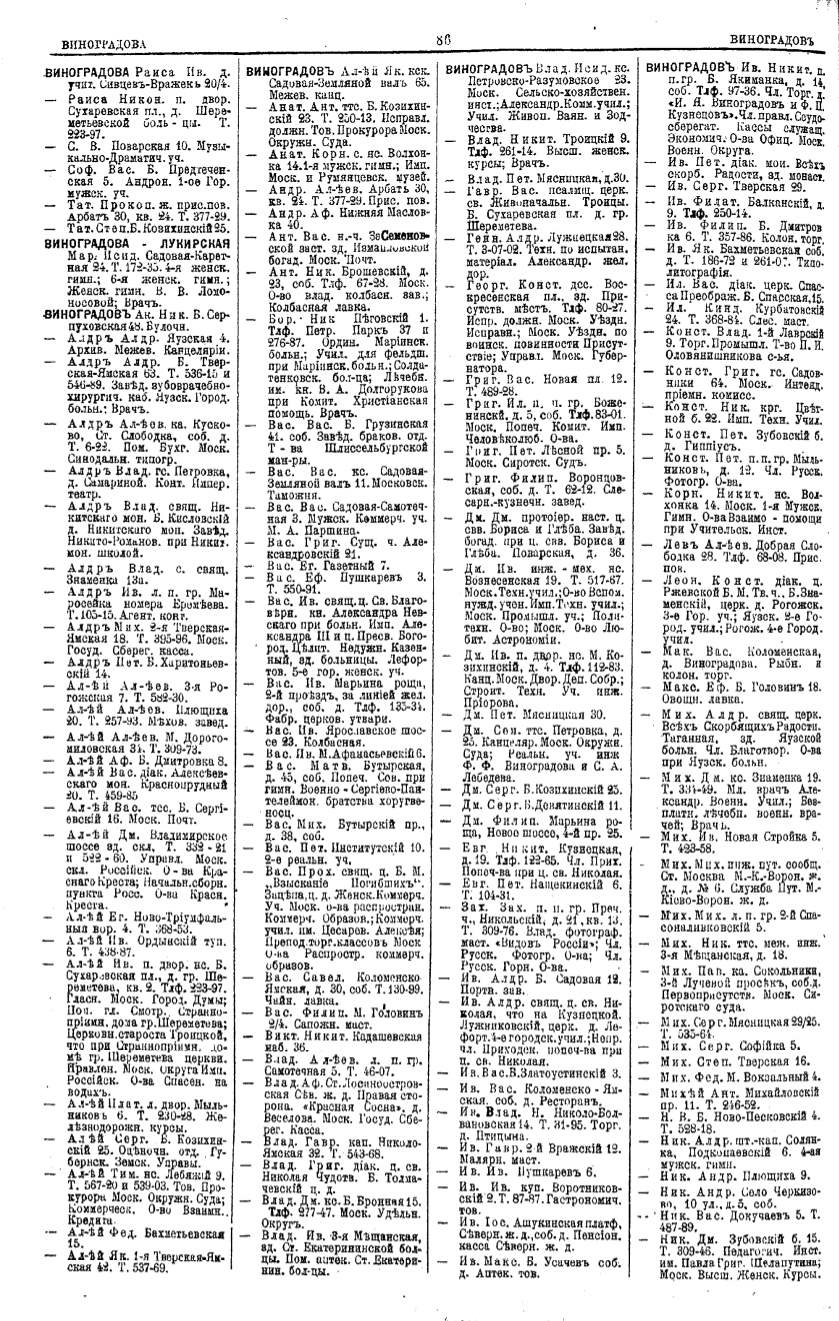 Алфавитный указатель адресовъ жителей г. Москвы и ея пригородовъ - page 86