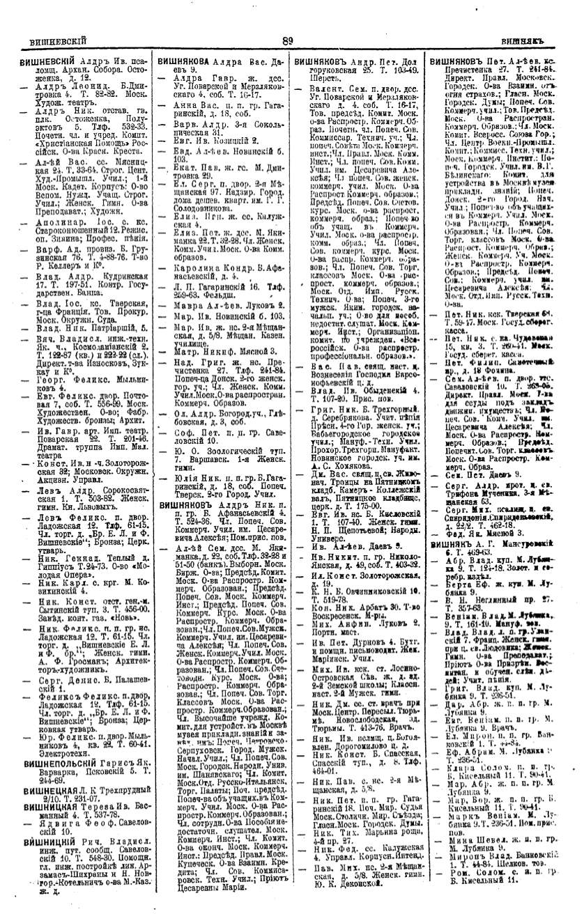 Алфавитный указатель адресовъ жителей г. Москвы и ея пригородовъ - page 89