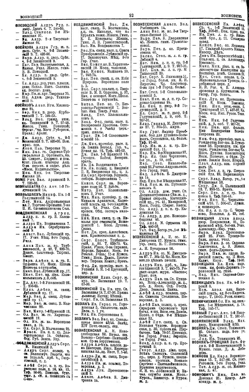 Алфавитный указатель адресовъ жителей г. Москвы и ея пригородовъ - page 92