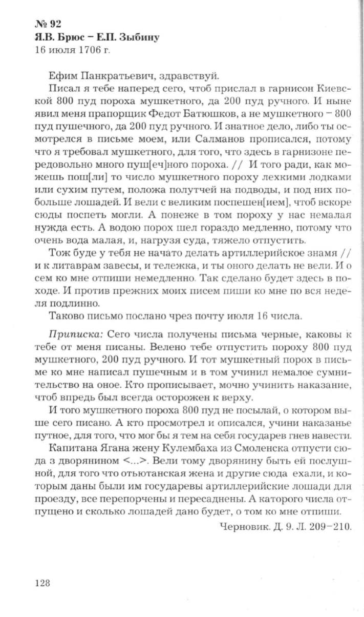 Писал я тебе наперед сего, чтоб прислал в гарнисон Киевс