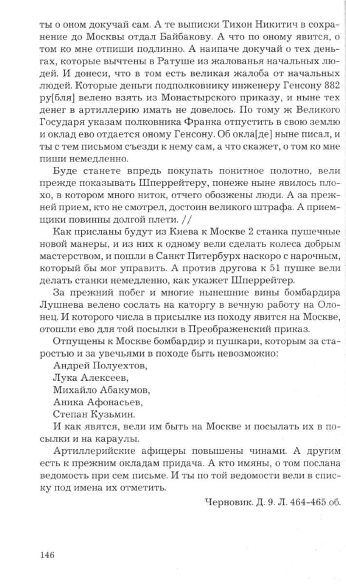 Отпущены к Москве бомбардир и пушкари, которым за ста-