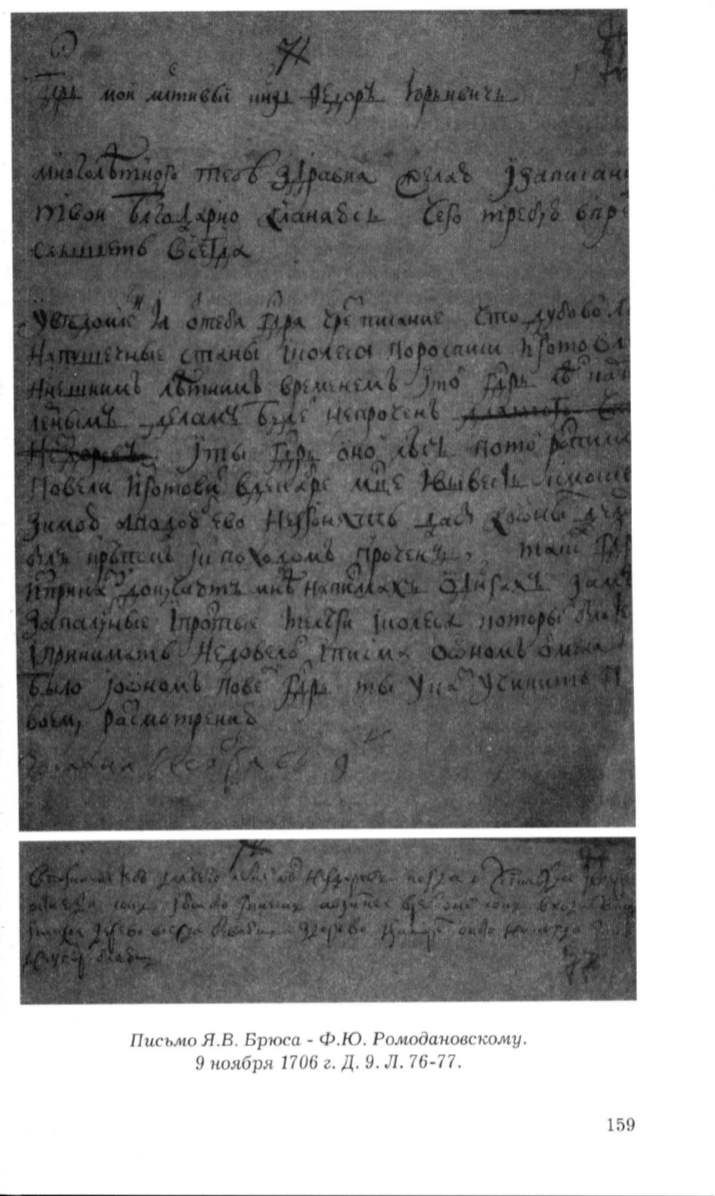 Писъ.мо Я.В. Брюса - Ф.Ю. Ро.модаиовско.му.