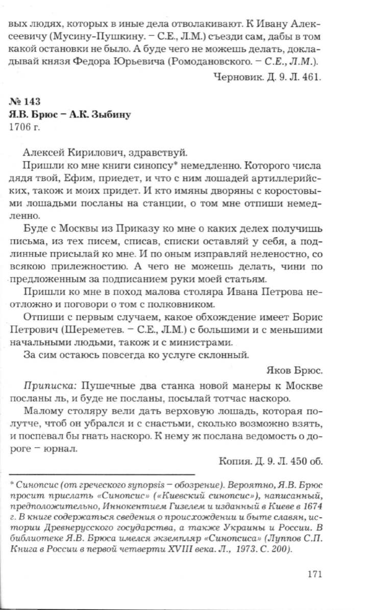 библиотеке Я.В. Брюса и.мелся экземпляр « Синопсиса» (Луппов С.П.