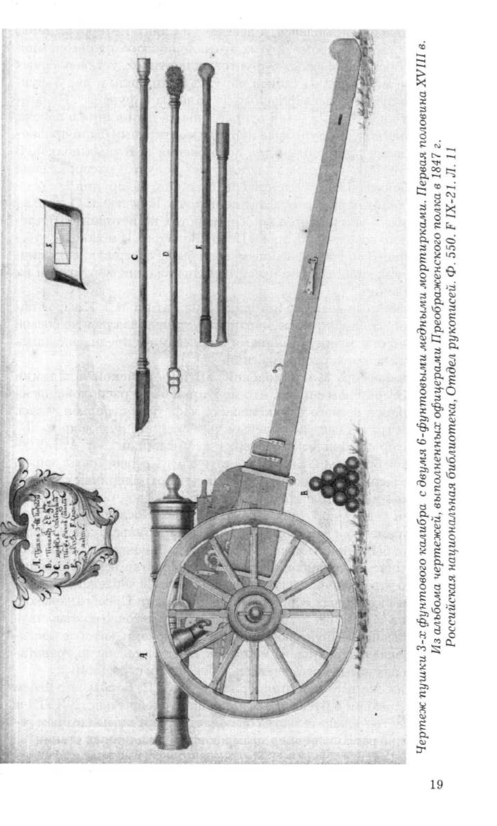 Чертеж пушки 3-х фунтового калибра с двумя б-фунтовыми медными мортирками. Первая половина