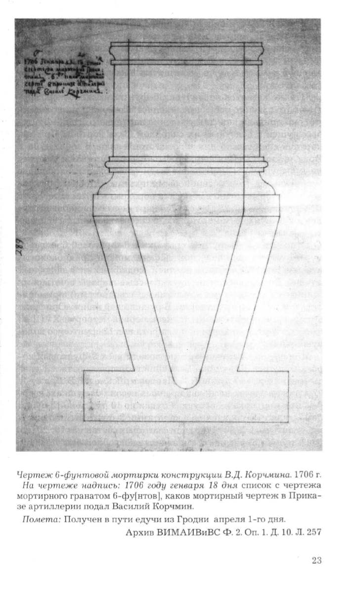 Чертеж б-фунтовой мортир1еи 1СОНстру1Сцuи В.Д. Корчмина.