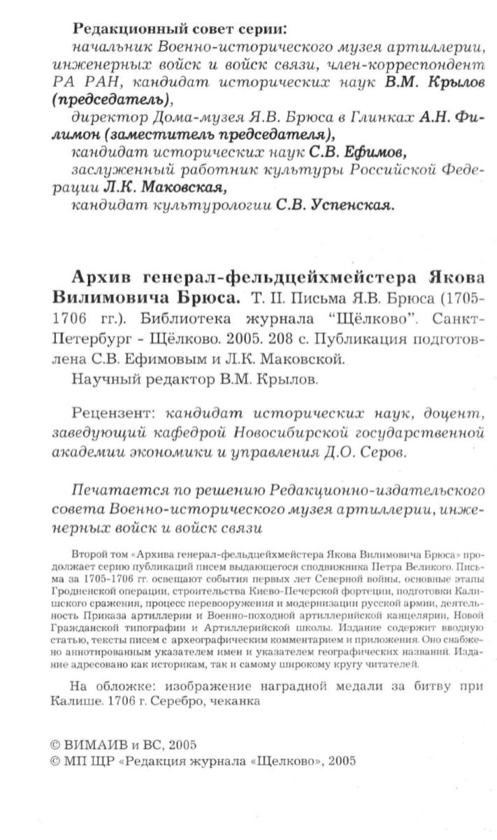 Второй том <<Архива генерал-фельдцейхмейстера Якова Вилимовича Брюса >> про
