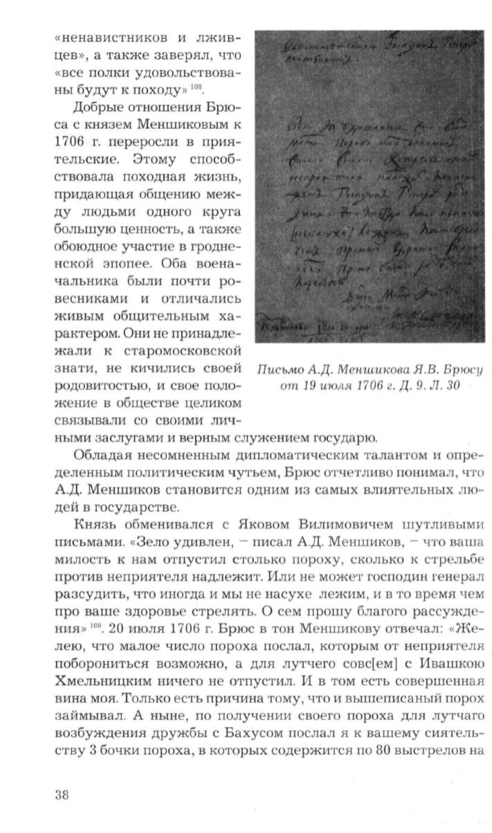Писъ.мо А.Д. Меншикова Я. В. Брюсу