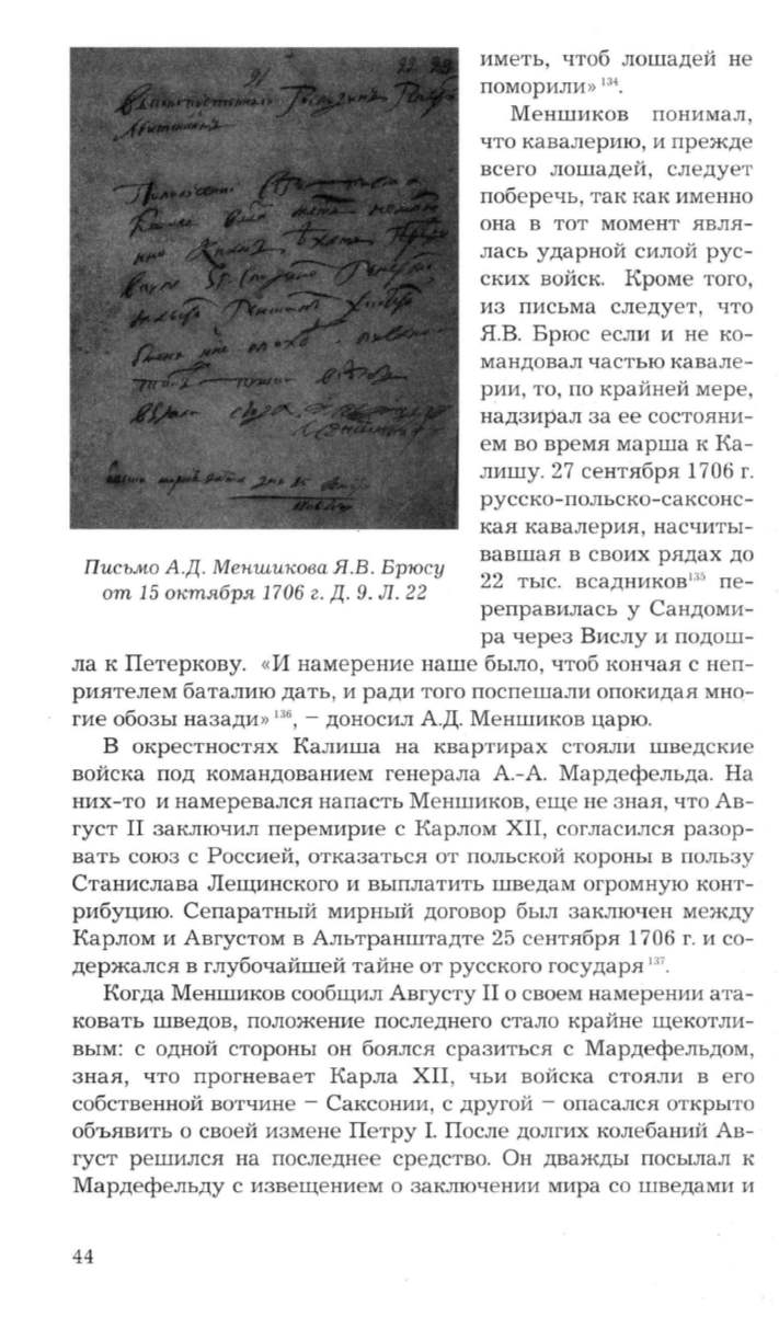 Писъ.мо А.Д. Меншикова Я.В. Брюсу