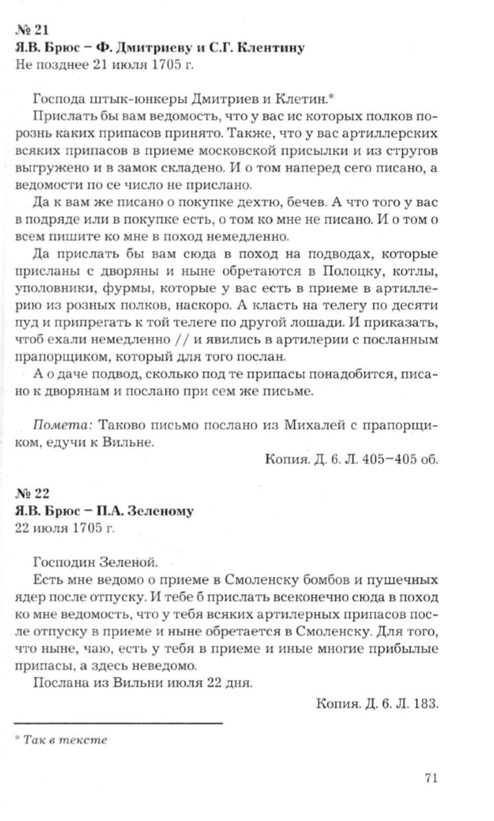 Помета: Таково письмо послано из Михалей с прапорщи