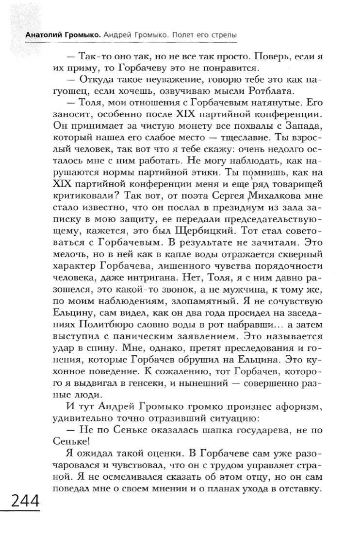 -Толя, мои отношения с Горбачевым натянутые. Его