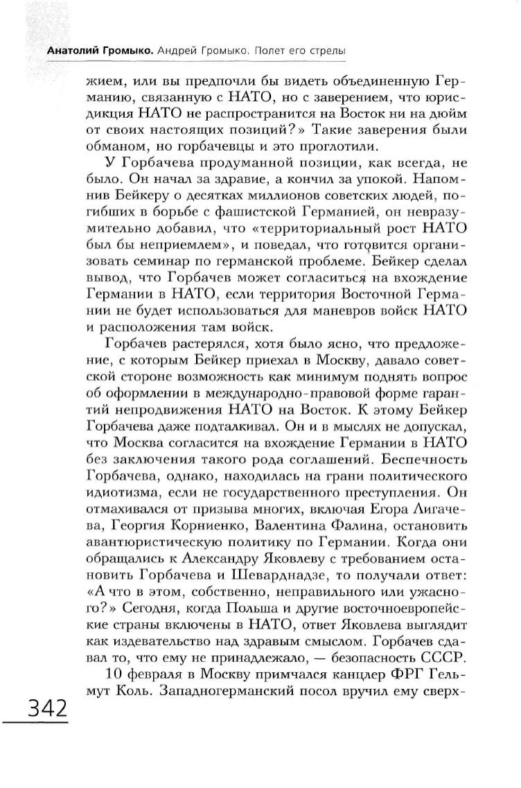 тий непродвижения НАТО на Восток. К этому Бейкер