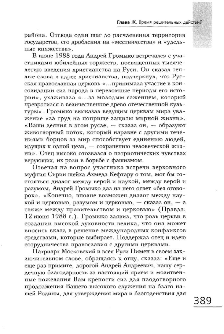 г.). Громыко заявил, что роль церкви в