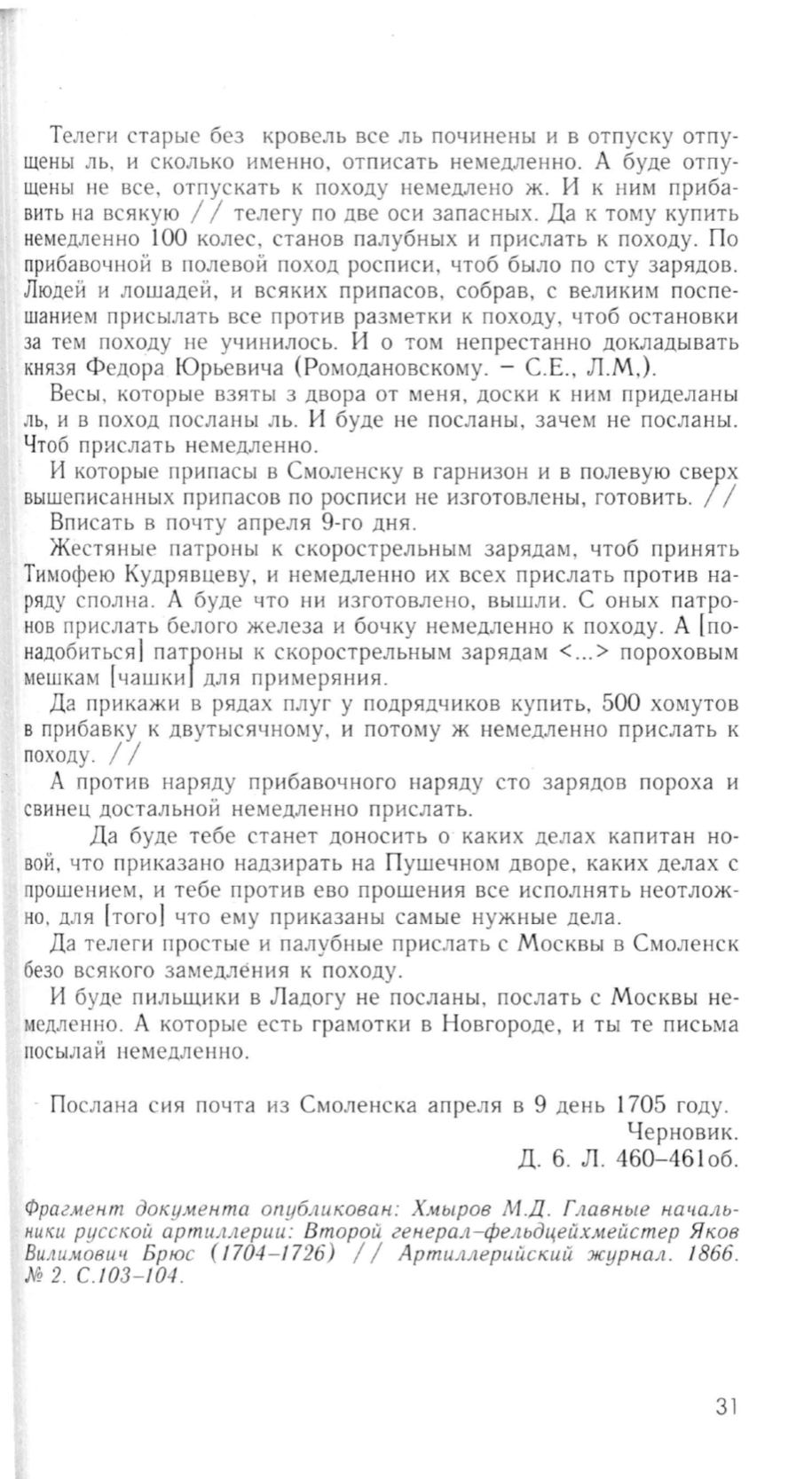 Да телеги простые и палубные прислать с Москвы в Смоленск