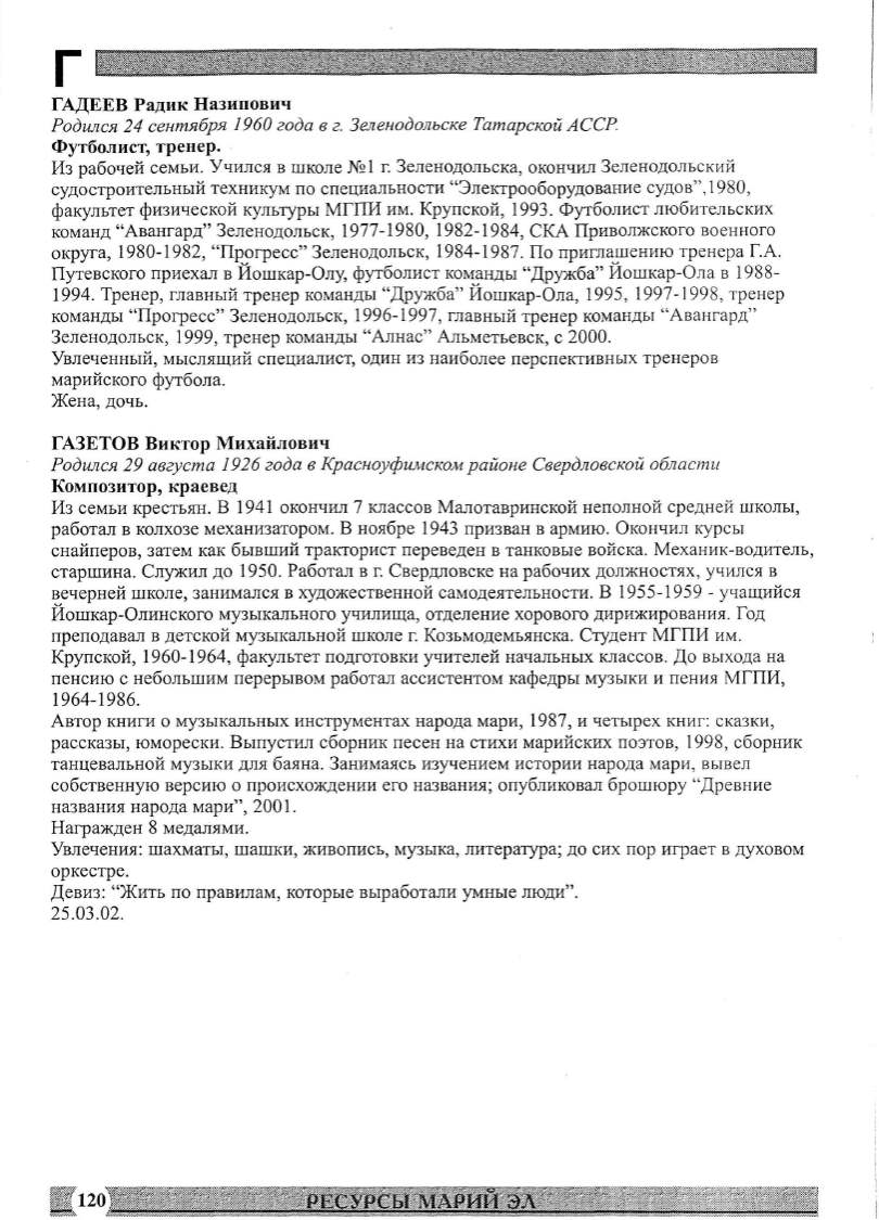 танцевальной музыки для баяна. Занимаясь изучением истории народа мари, вывел
