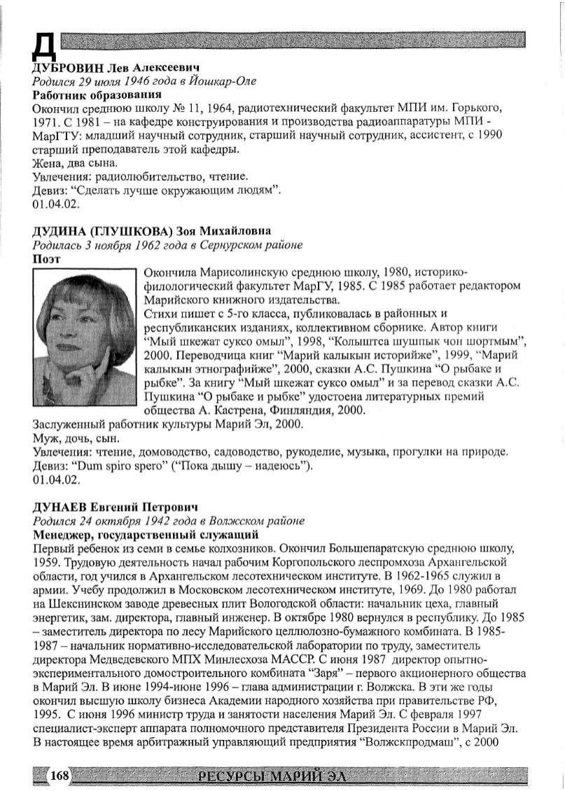 ДУДИНА (ГЛУШКОВА) Зоя Михайловна