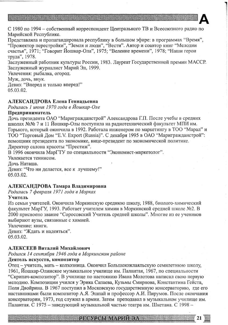Дочь президента ОАО "Маригражданстрой" Александрова ГЛ. После учебы в средних