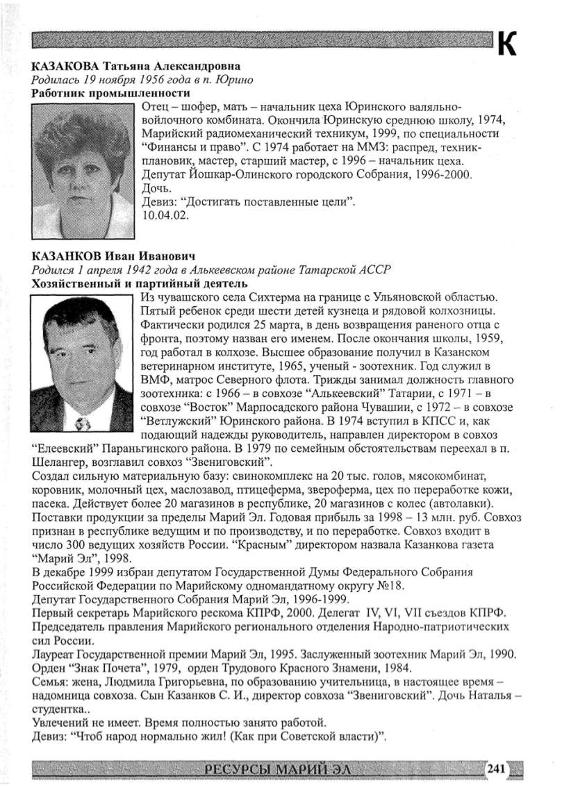 надомница совхоза. Сын Казанков С. И., директор совхоза "Звениговский". Дочь Наталья