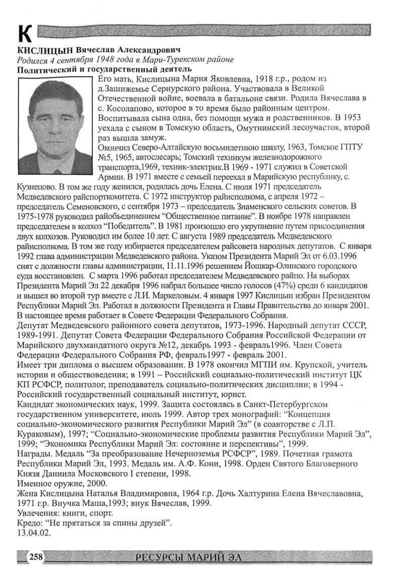 вместе с семьей переехал в Марийскую ресnублику, с.