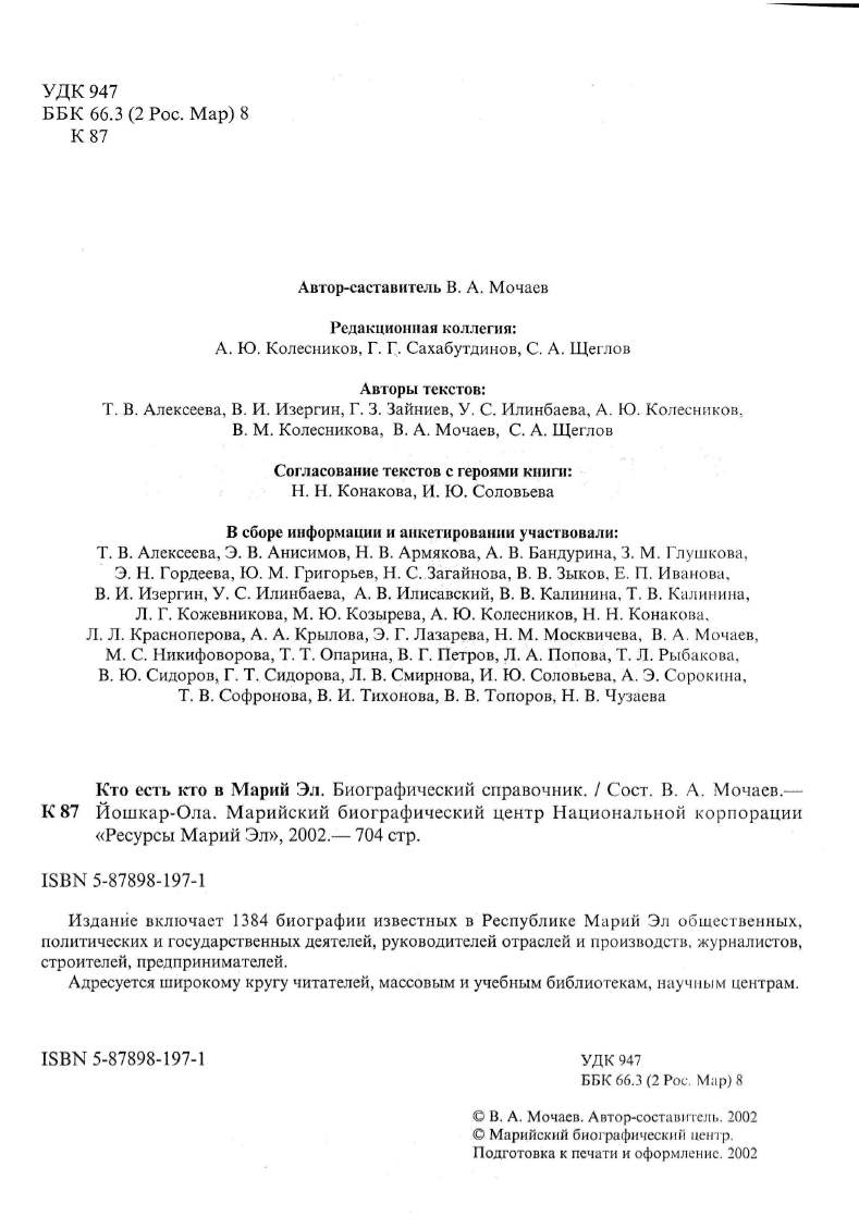 Кто есть кто в Марий Эл . Биографический справочник.