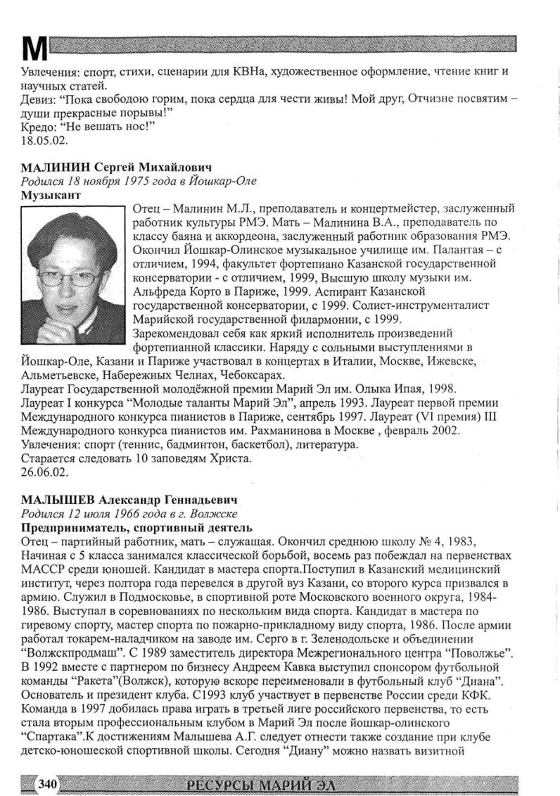 работник культуры РМЭ. Мать- Малинина В.А., nреподаватель по