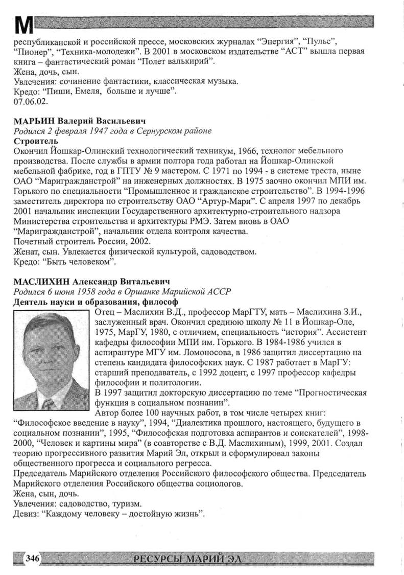 Отец- Маслихин В.Д. , профессор МарГТУ, мать - Маслихина З.И. ,