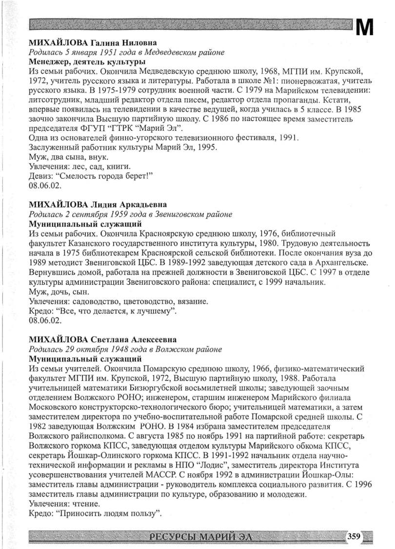 Волжского горкома КПСС, заведующая отделом культуры Марийского обкома КПСС,