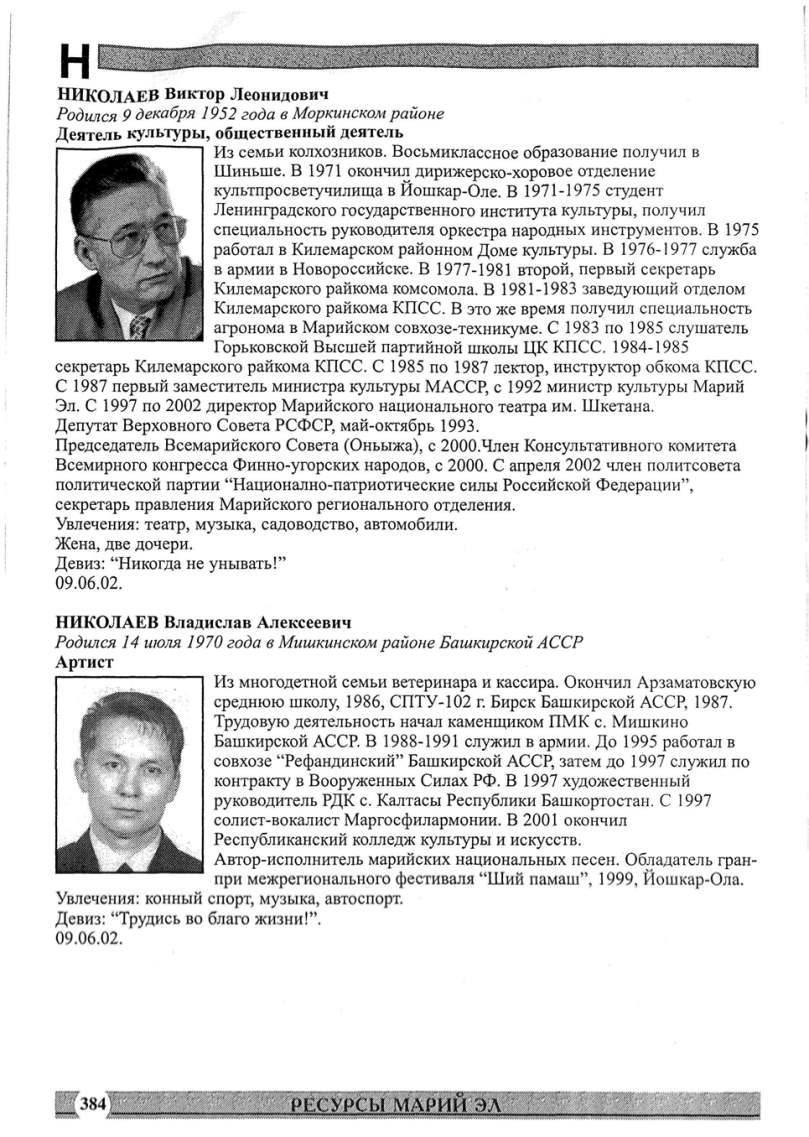 Председатель Всемарийского Совета (Оньыжа), с 2000.Член Консультативнщо комитета