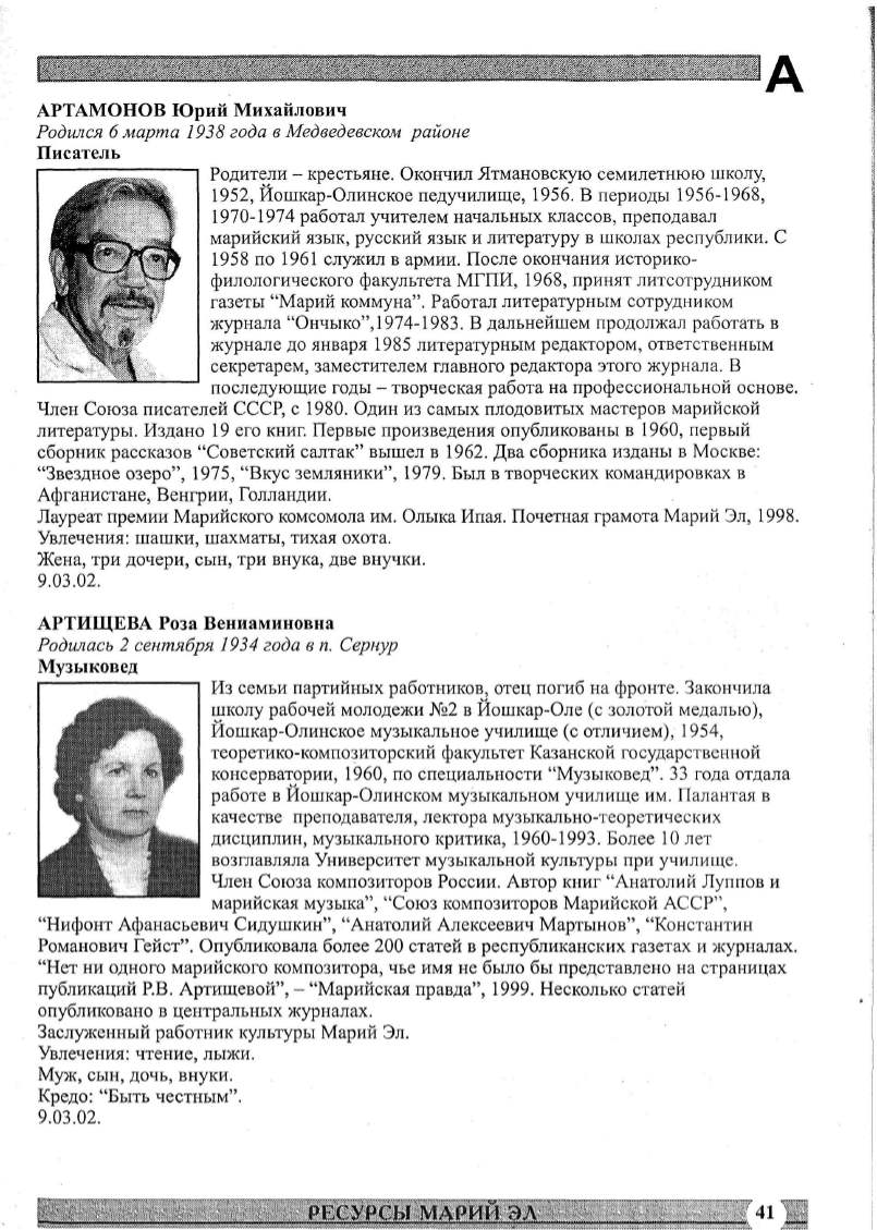 публикаций Р.В . Артищевой", - "Марийская правда",