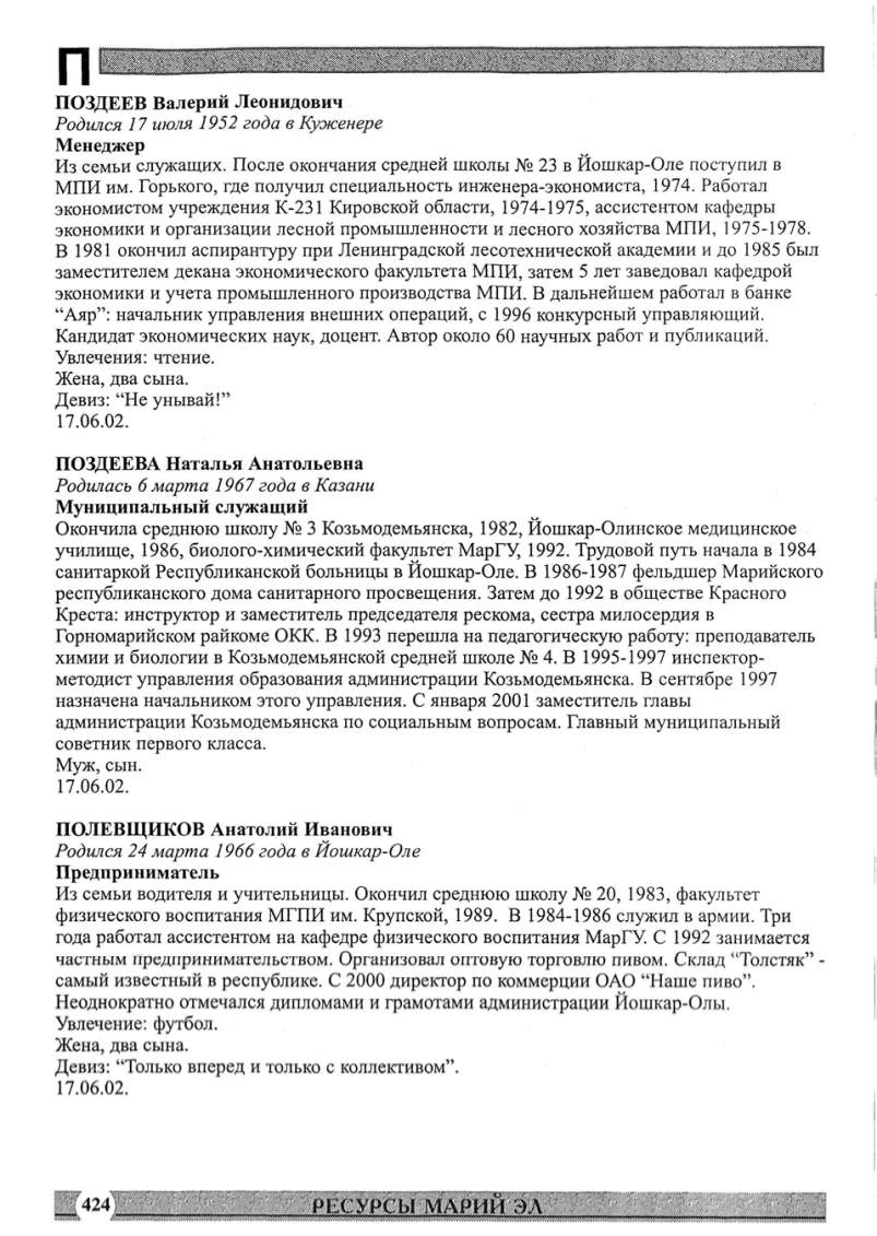 экономики и учета промышленного производства МПИ. В дальнейшем работал в банке