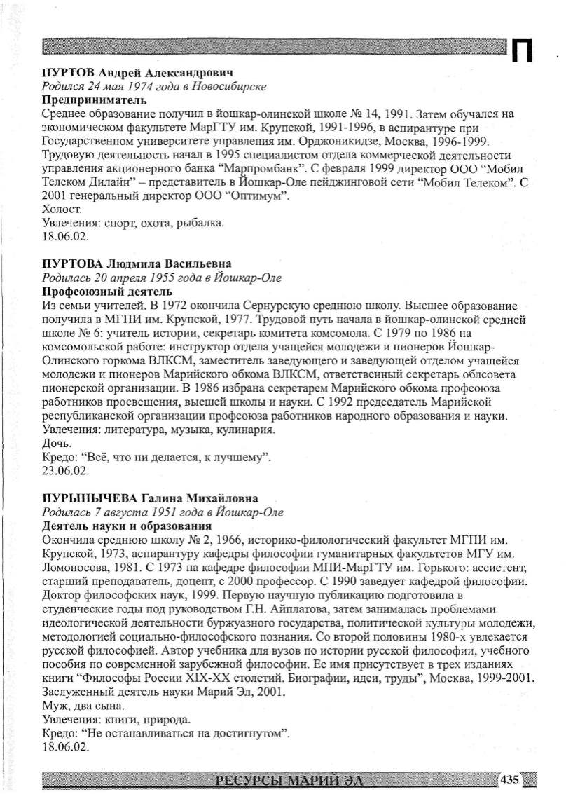 комсомольской работе: инструктор отдела учащейся молодежи и пионеров Йошкар