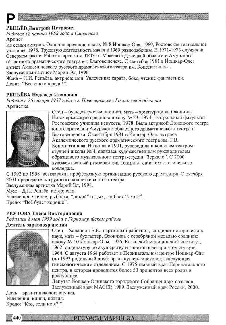 Жена- Н.И. Репьёва, актриса; сын. Увлечения: каратэ, бокс, чтение фантастики.