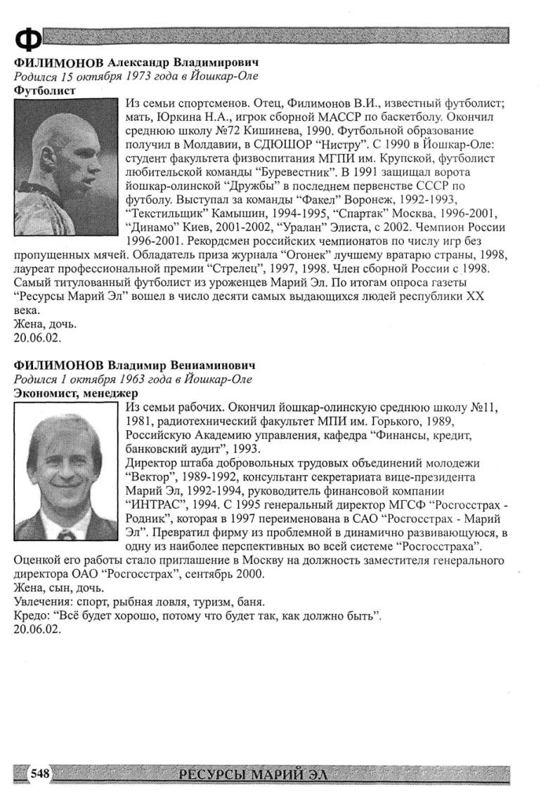 Из семьи спортсменов. Отец, Филимонов В .И., известный футболист;