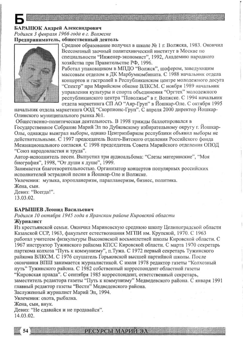 БАРЫШЕЕ Леонид Васильевич