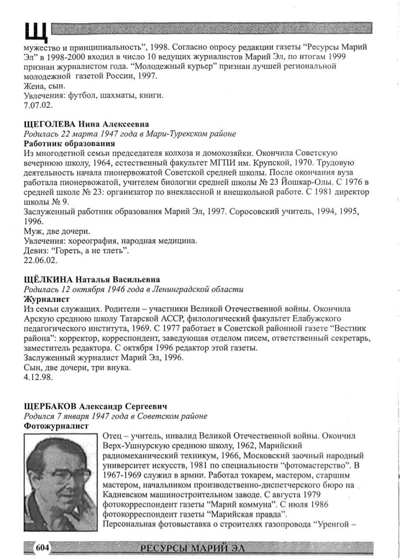 ЩЕГОЛЕВА Нина Алексеевна