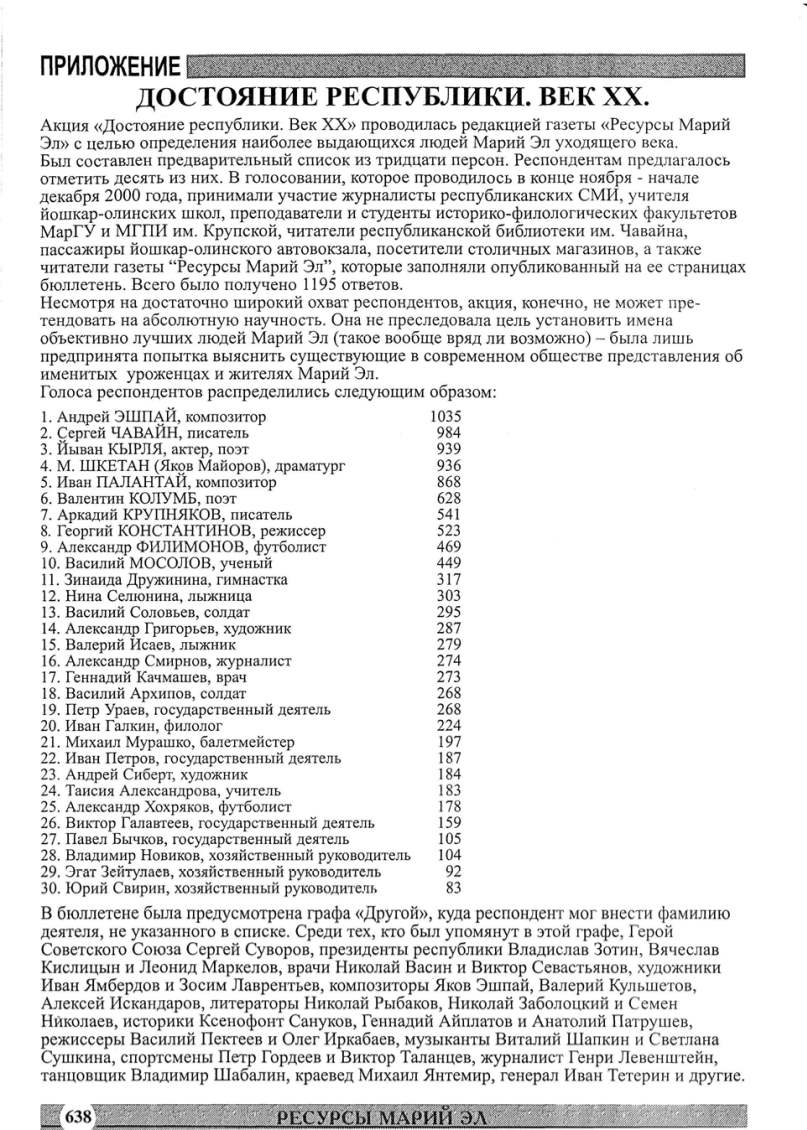 Эш> с целью определения наиболее выдающихся людей Марий Эл уходящего века.